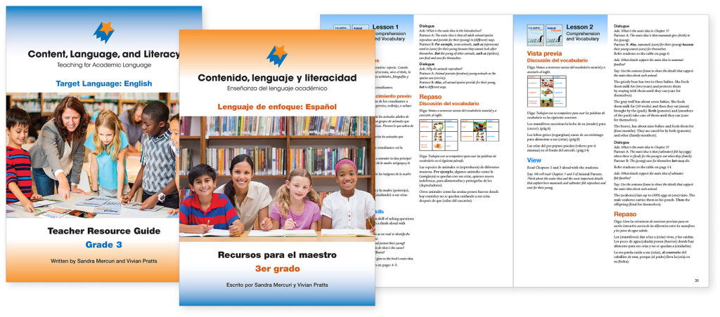 Two Teacher Resource Book, Target Language English and Target Language Spanish, are provided in every Grab-and-Go kit. Inside, you will find all that you need for comprehensive, robust instruction in both languages. Lessons are designed for teachers working with emergent and experienced bilinguals in different educational contexts.